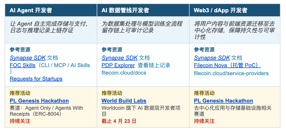 该标准由超过 15 个组织联合贡献,包括 Filecoin 生态参与方,原生支持 Filecoin,同时兼容 EVM、Solana、Bitcoin 等主流链。这一进展进一步确立了 Filecoin 作为 Agent 经济存储层的生态定位。