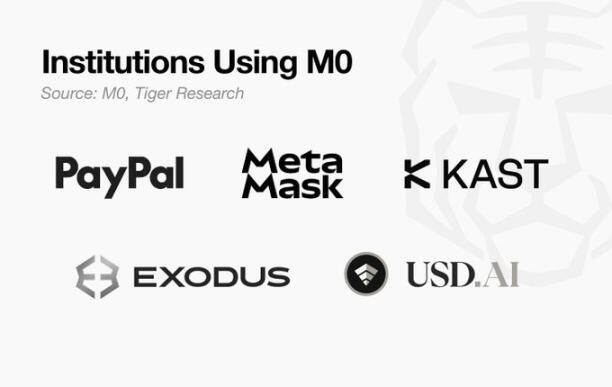 M0 公司并不直接发行稳定币。相反,它提供共享基础设施,使其他公司能够发行自己的稳定币。MetaMask 和 Exodus 已在该平台上运营稳定币。随着发行方和建设者的不断加入,该模式通过网络效应持续增强。