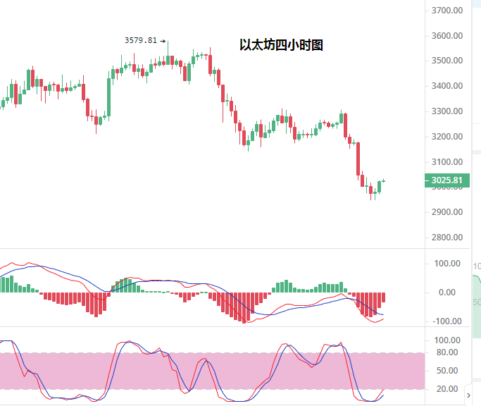 以太坊合约趋势分析:以太坊近期呈震荡下跌走势,每天都在不断试探低点,仍然是在凌晨时分,最低回落至2950附近,目前仍然在3000附近震荡调整,并没有出现比较明显的反弹。