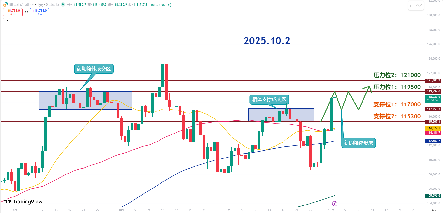 119K is a strong psychological resistance level; if it can break through this position, the market's bullish confidence will be completely ignited. If a pullback occurs, 117K is the key support level, which is an acceptable normal pullback range.