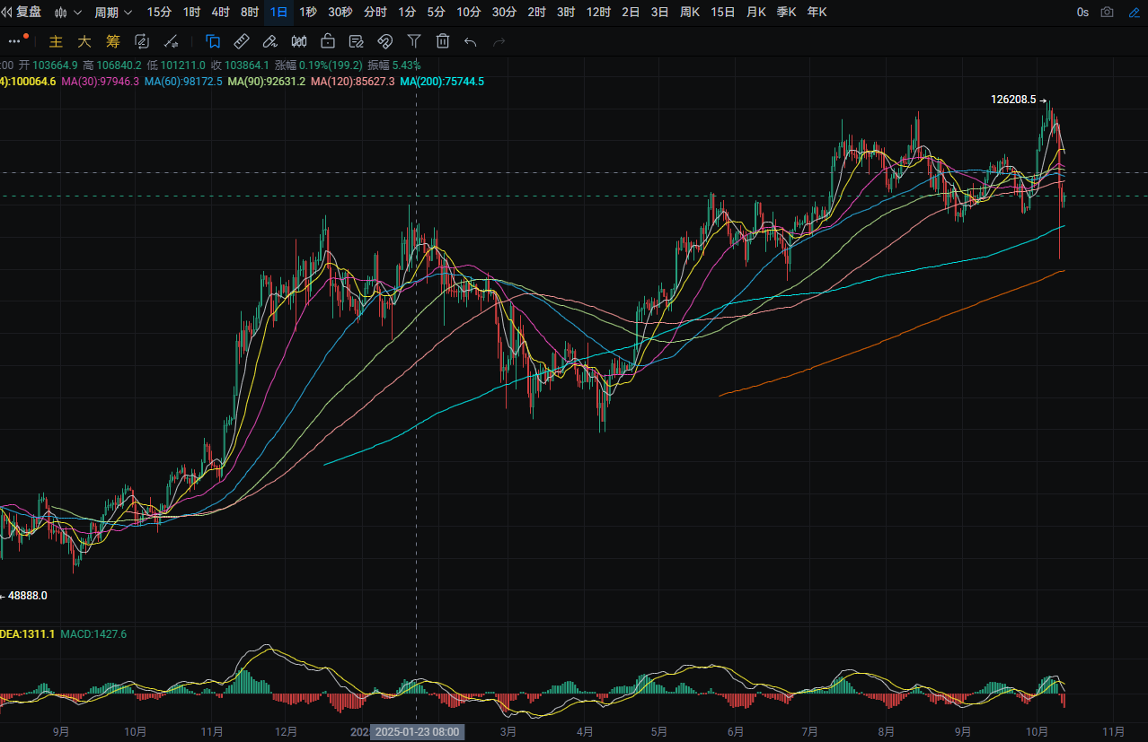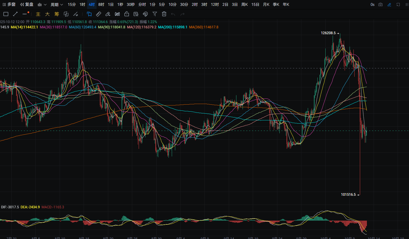 Bitcoin's daily line fell from a high of around 113,300 to a low of around 109,500 yesterday, closing around 110,600. The support level is around 109,000; if it breaks, it could drop to around MA200. A pullback can be used to buy near this level. The resistance level is around MA120; if it breaks, it could rise to around MA90. A rebound near this level can be used to sell. MACD shows increasing bearish momentum. The four-hour support level is around 110,000; if it breaks, it could drop to around 108,800. A pullback can be used to buy near this level. The resistance is around 113,000; if it breaks, it could rise to around MA360. A rebound near this level can be used to sell. MACD shows decreasing bearish momentum.