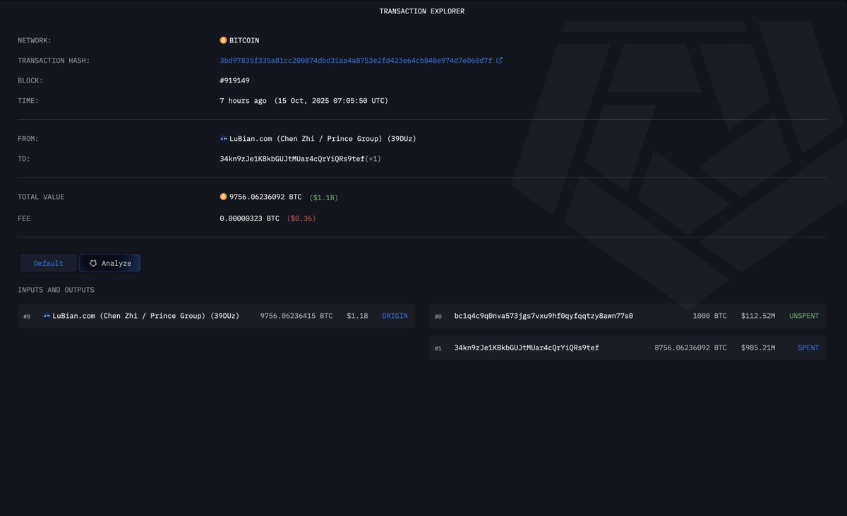 LuBian’s largest remaining address moved almost $1.1 Billion of BTC, and this was its first movement in 3 years.