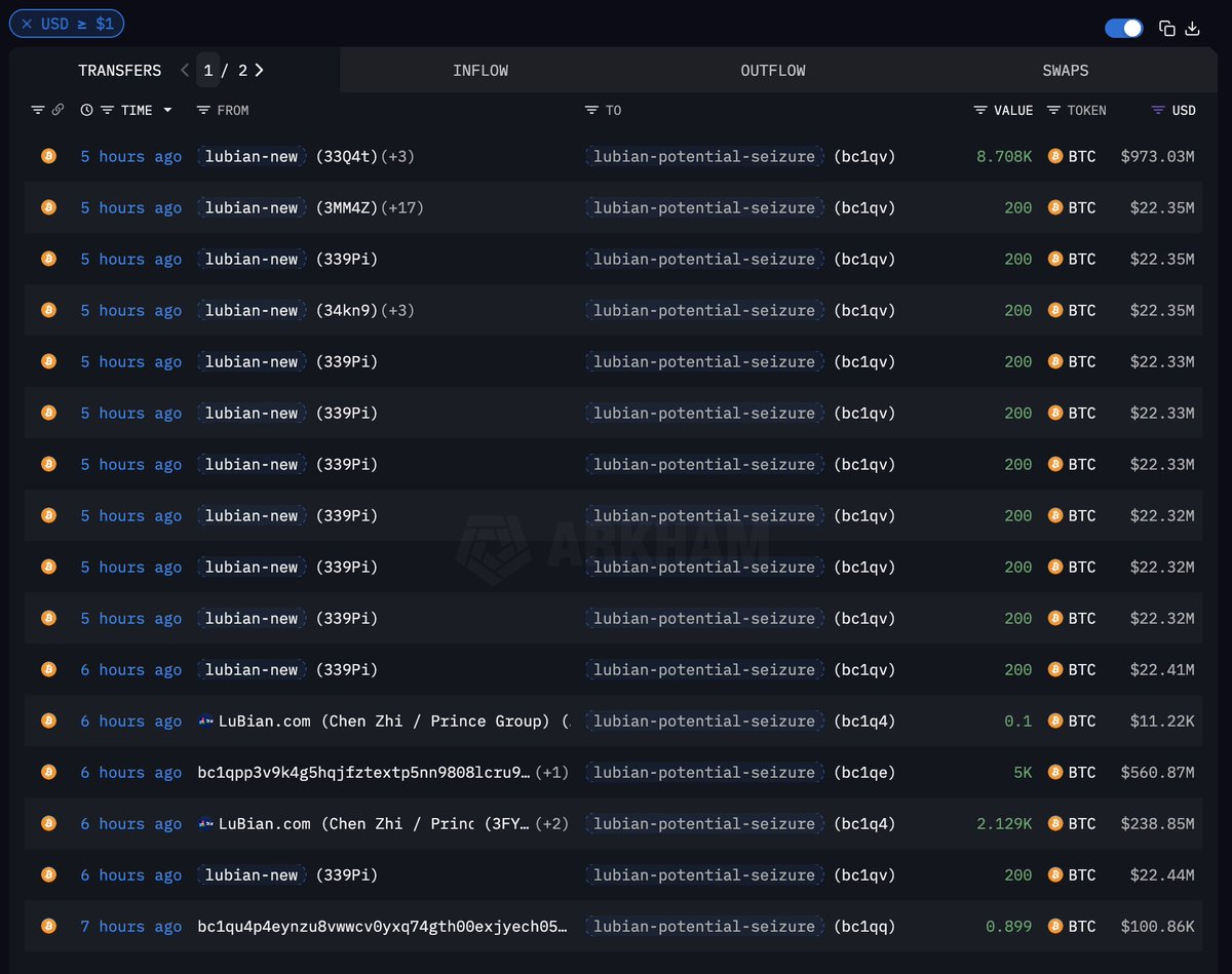 $2.4 Billion of $BTC moved out of LuBian-associated wallets today, which may have represented US Government seizures. This is in addition to the $14.1 Billion revealed yesterday.