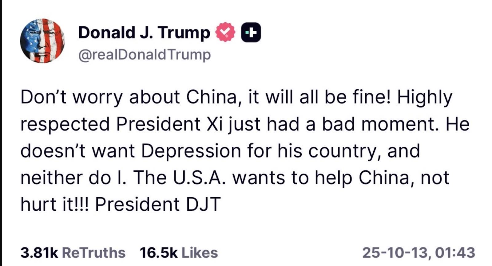 Source: Trump’s Truth Social post (left: Trump threatens tariffs, right: Trump softens his stance).