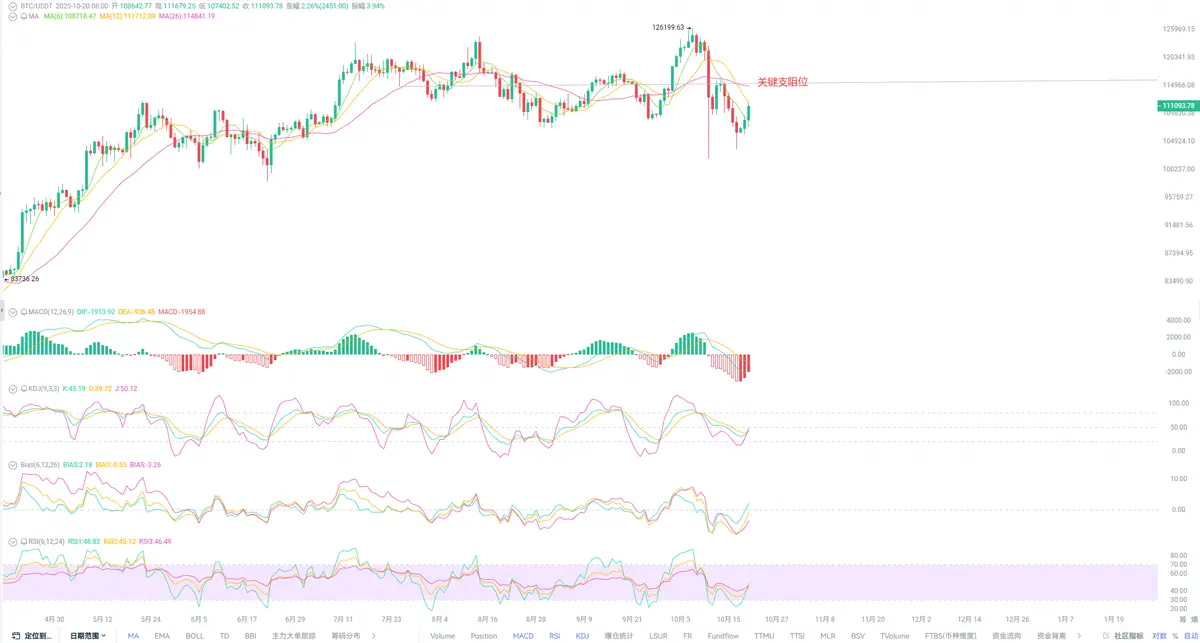 Looking back at the cryptocurrency market, we analyze the short-term changes we can foresee. Since the "black swan event" on October 11, Bitcoin's sideways pattern has been disrupted. Lin Chao has repeatedly emphasized that after experiencing a clear top structure, the most conservative approach is to exit and wait. With the repair over the past week, we have not seen strong signs of stabilization. Lin Chao has previously reminded everyone that whether in a bull or bear market, the pattern will not emerge in a single day. However, different cycles require different operational approaches. Considering that some short-term users are looking for a suitable exit timing, everyone can actually patiently wait until around October 30, before and after the Federal Reserve's interest rate cut announcement, to make specific operations, as the market may engage in short-term speculation on this interest rate cut expectation.