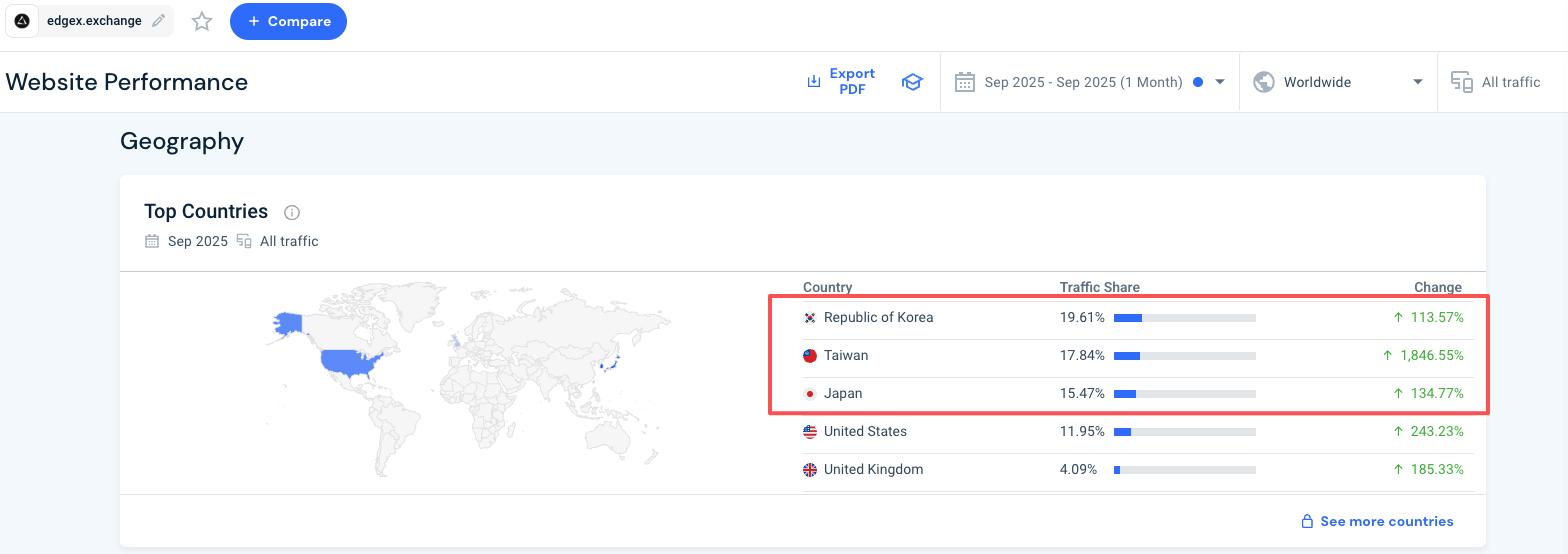 The web traffic data shown below (source: similarweb) indicates that Japan, Korea, and Taiwan account for half, with many VPN users from mainland China dispersed globally. From the community situation, the proportion of users from China is also significant.