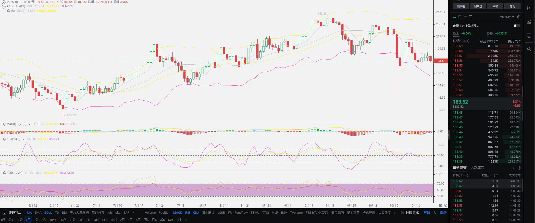 Everyone has their own trading system and their own profit-taking goals. Lao Cui's profit-taking goals are also very clear: Bitcoin 130,000-150,000, Ethereum 5,000-6,000, SOL 300-350, OKB above 300. Once these conditions are met, Lao Cui will definitely take profits without reservation. At the same time, you should look at the current trend and feel that it seems a bit unrealistic. The current trend is one of weak growth and rapid decline. As CZ said, you must firmly believe in your beliefs to validate your views. The above prices are within Lao Cui's understanding. It does not mean that after reaching the profit-taking target, the market will decline; rather, Lao Cui's understanding can only reach this point. Perhaps in the future, it is indeed possible to achieve higher targets, which is not an impossible concept. Lao Cui is just an analyst and can only analyze future trends based on existing conditions. He is not a big figure, and the market trend cannot follow Lao Cui's every guess. Do not overestimate yourself.