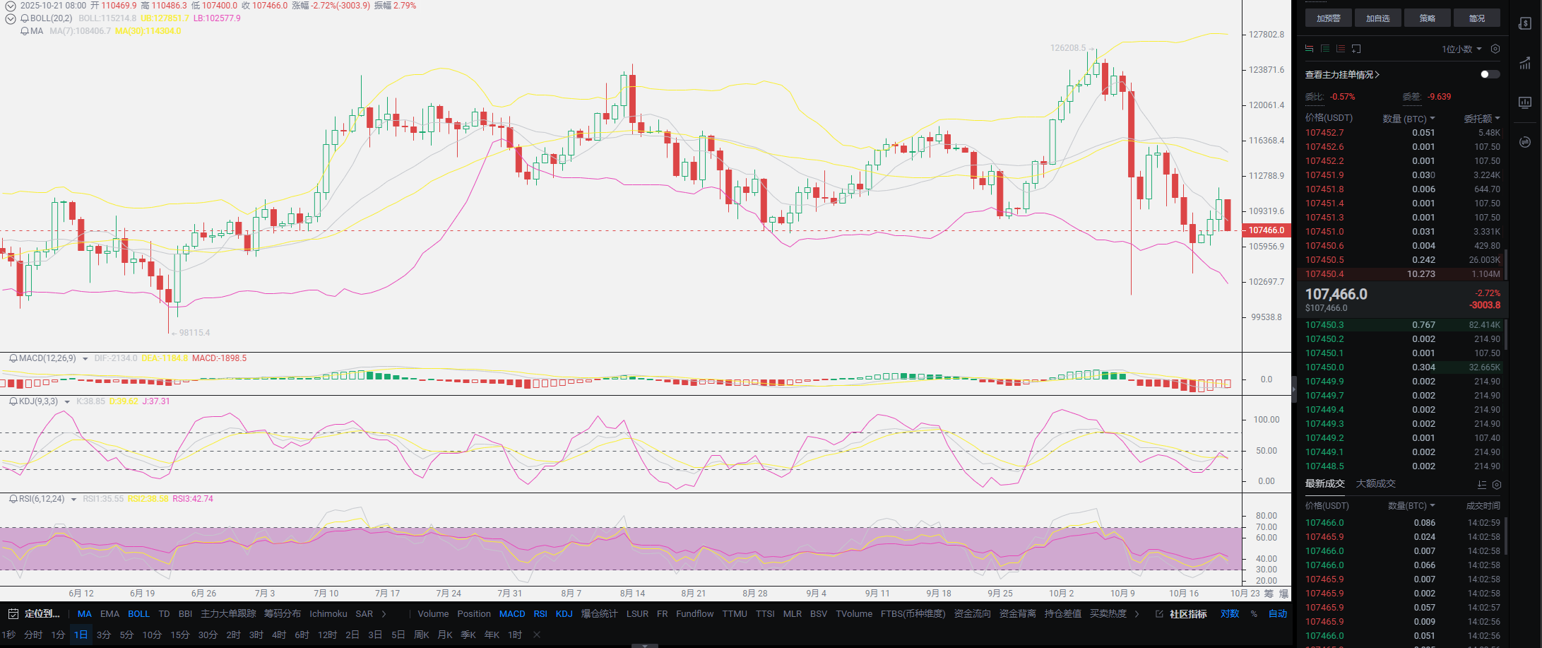 Lao Cui summarizes: Today's theme is still about the speculation and interpretation of the conference. Such news-level stimulation cannot change the trend of the current coin circle. The known information that Lao Cui currently sees still favors the bulls. First, the unchanged Vanguard Group has purchased 21 million METAplanet assets, which indirectly supports the coin circle, representing substantial capital inflow. Secondly, the probability of a 25 basis point rate cut in October has reached 99%. The biggest positive news is that the tapering may end next week, and at the same time, the Federal Reserve may lower the reserve interest rate to alleviate financing pressure. If a series of measures can be achieved next week, Lao Cui can basically confirm that the activation of the coin circle will also begin next week. Everyone should be clear that if a series of measures are achieved next week, it will at least bring trillions of liquidity to the market, which will somewhat stimulate the coin circle. Ending tapering will directly lead to cash depreciation, so no company will want to keep cash on hand and will definitely seek markets that can outperform inflation. This means what? The downward trend of the coin circle will be fully realized within this week, and it is highly likely that the expectation of a rate cut will be speculated, meaning there will be a rebound next week. This is also a double-edged sword; speculating on the expectation of a rate cut also means that there may still be a decline after the rate cut until the inflow of large funds officially starts the bull market phase. The cash flow from the rate cut and the end of tapering requires a certain time lag. Everyone should understand that this week is your buying point for spot trading. Even if the short-term trend is bearish, do not pursue short-term stimulation; it is time to lay out long positions! At the end of the article, if anyone has questions, feel free to ask me!