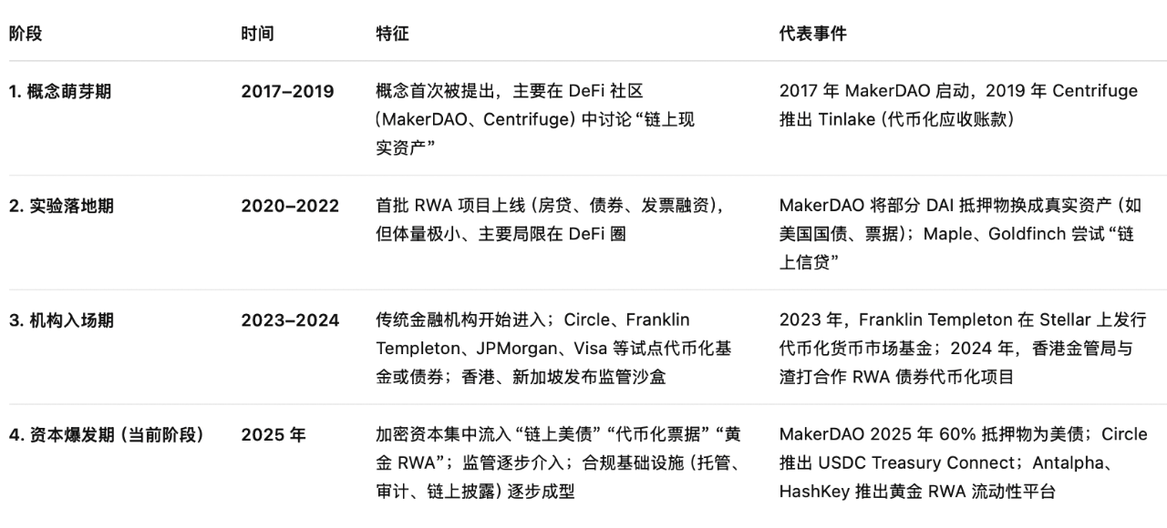 The concept of RWA was proposed as early as 2019, initially just an experiment within the DeFi community. Over the past few years, it has undergone a phased evolution from "on-chain credit" to "institutional entry." By 2025, RWA finally reached a critical turning point from concept validation to institutional implementation. If DeFi in 2020 was an "algorithmic financial laboratory," then RWA in 2025 is the "reconstruction of asset finance."