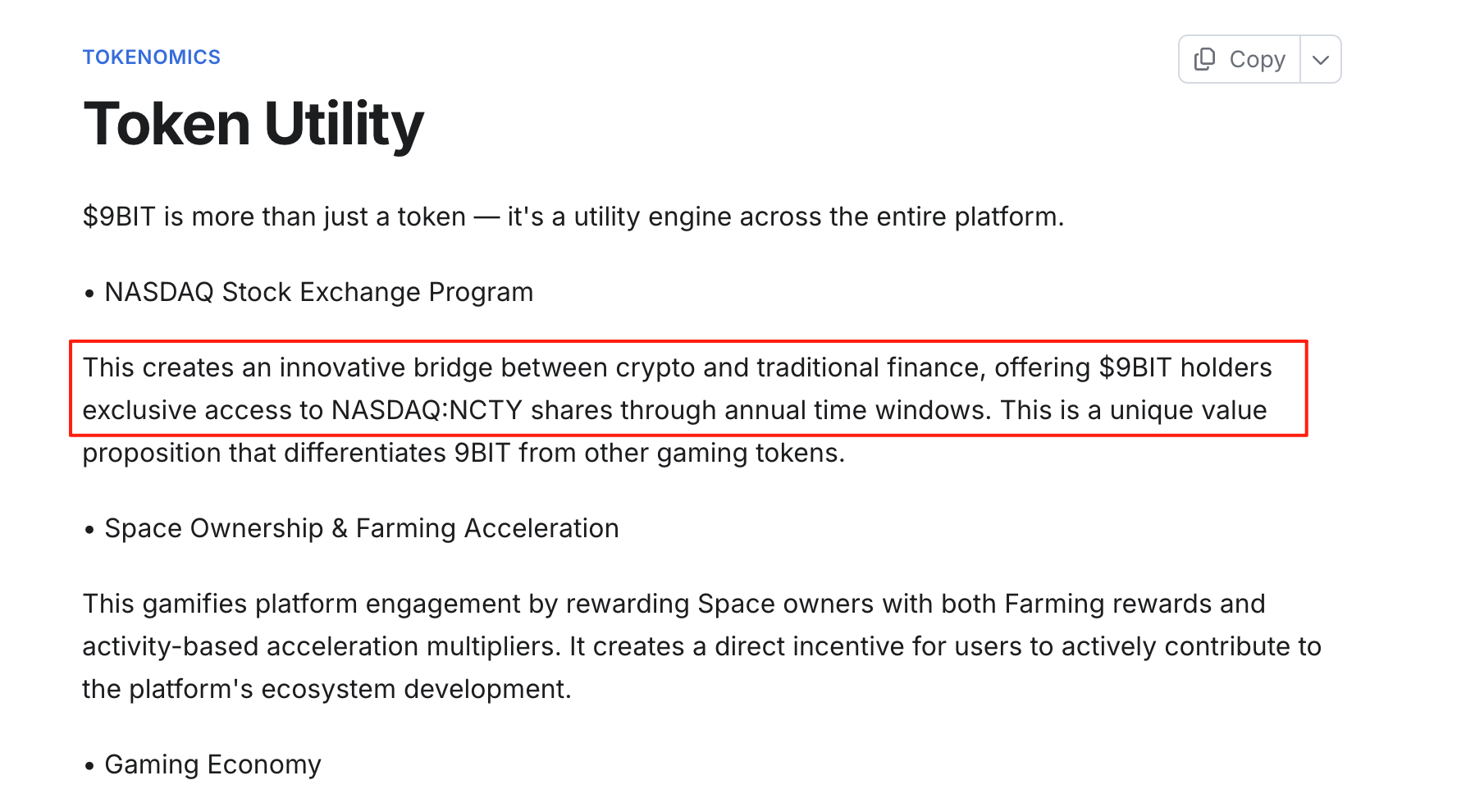 You can use it to purchase games, receive discounts; staking it can increase your Space's mining efficiency; holding a certain amount allows participation in exclusive platform events, and even the opportunity to purchase The9's stock.