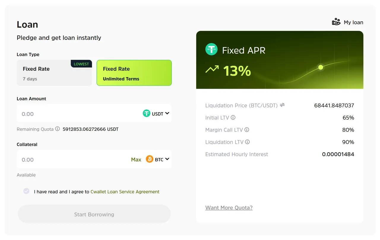 At the same time, Cwallet lending offers short-term fixed rates for 7 days, as well as long-term modes with indefinite fixed rates, allowing users to choose flexibly based on their own situations. The interest rate is calculated down to the hour, with an annual fixed rate of only 13%, helping users leverage more funds at a low cost.