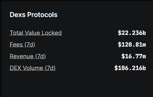 The DEX AMM space is currently the largest category in DeFi by fees generated, roughly $120M over the last 7 days, compared to ~$75M from perp DEXs.