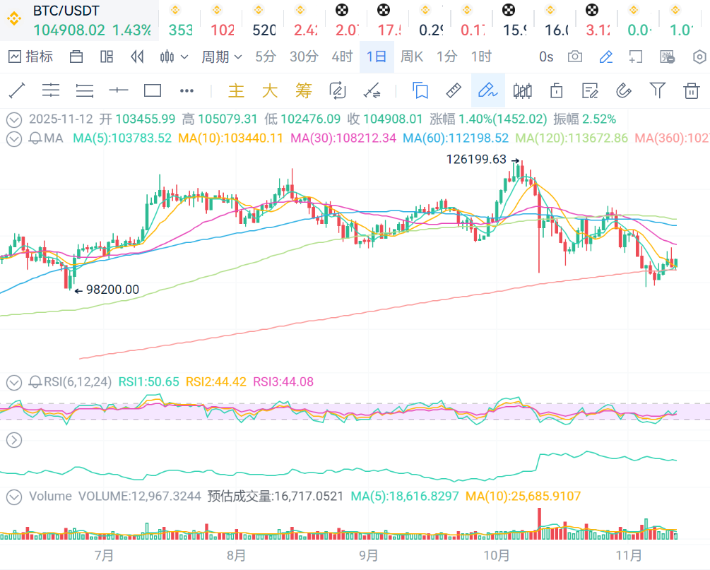 The world's largest cryptocurrency briefly broke through $107,000 on Monday but quickly fell back below $105,000. This lackluster price performance stands in stark contrast to the rising stock and credit bond markets due to the reopening of the U.S. government, indicating that the internal momentum of crypto assets remains insufficient.