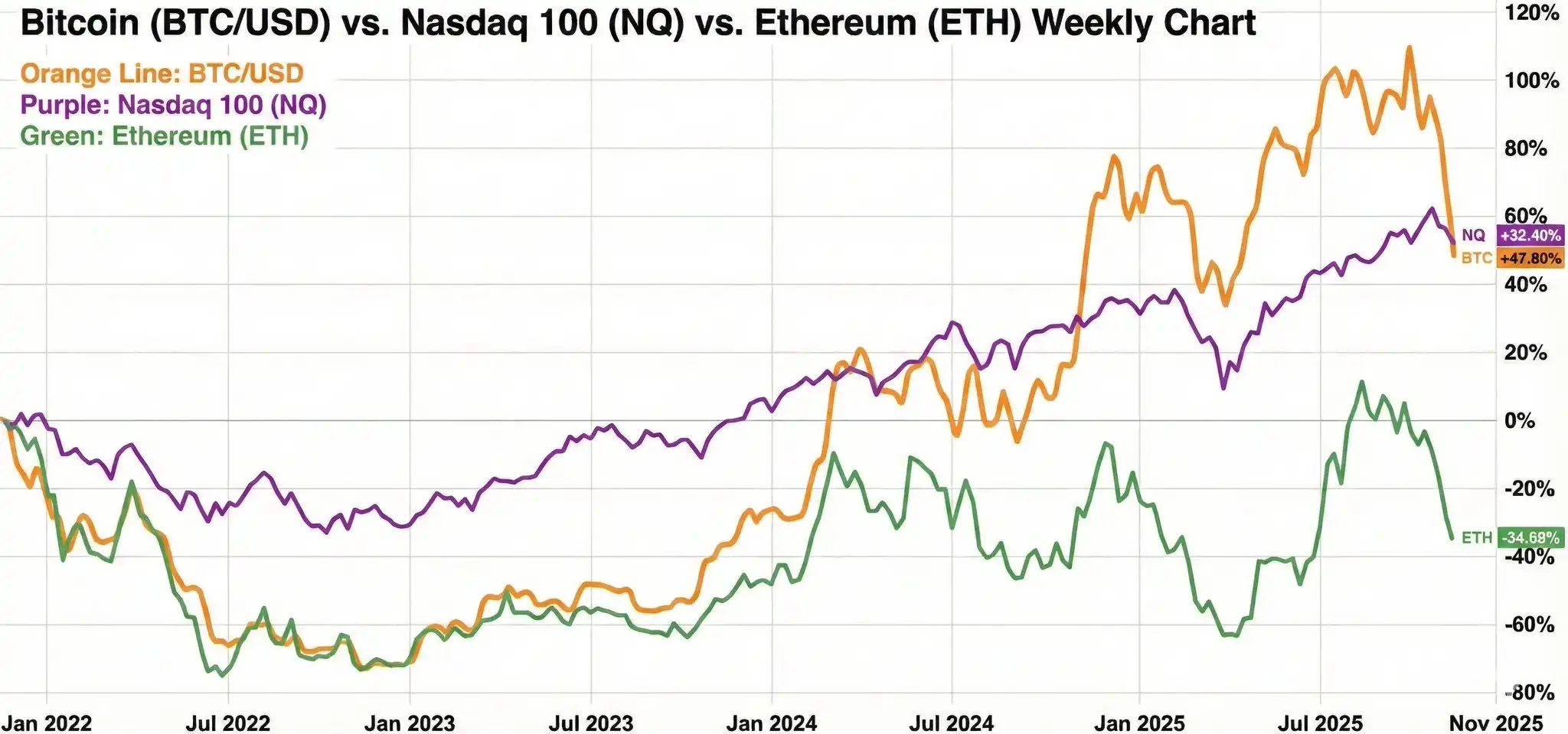 Look at the returns over a complete four-year cycle. The performance of the Nasdaq has already outperformed Bitcoin.