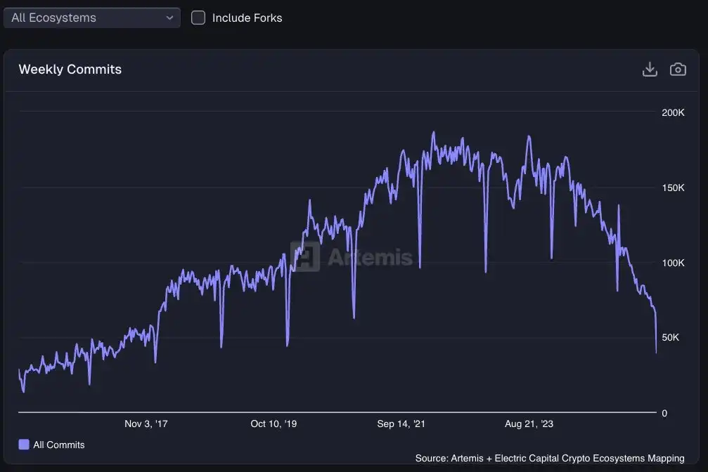 Developer activity has dropped back to 2017 levels.