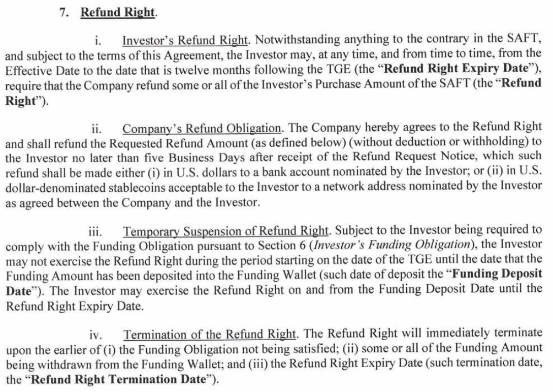According to the documents disclosed by Unchained, the investment agreement between Berachain and Nova includes a standard SAFT agreement along with a supplementary agreement that contains a refund right. The core content of this agreement includes: