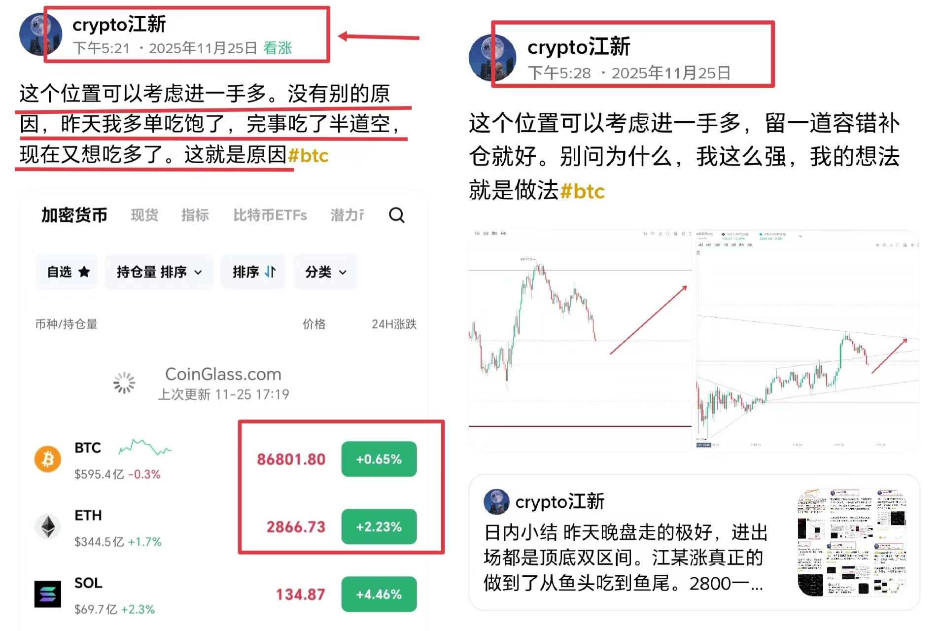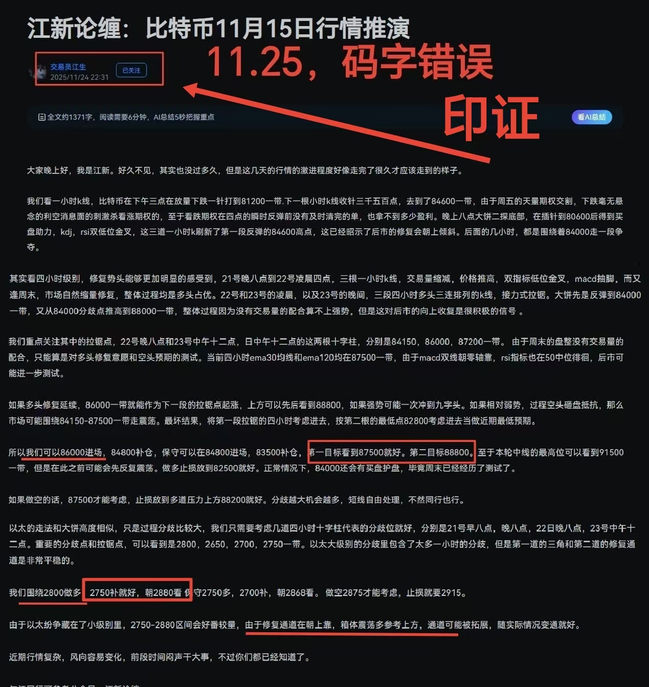 Good evening everyone, I am Jiang Xin. The results yesterday were great, and everyone should have felt it. Below are the verification records. Bitcoin's range of 86000-88800 was comfortable.
