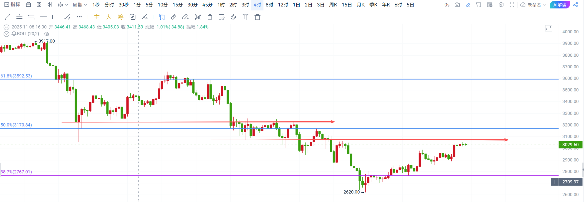 On the daily level, Bitcoin continues to close positively above 90,000, and the market has broken through expectations. The current resistance level is 92,000-93,000, and if it continues to rise, we look at 94,500-95,500, with support at 88,000-90,000! Ethereum closes positively above 3,000, and the market has also broken through expectations. The current resistance level is 3,030-3,100, and if it continues to rise, we look at 3,170, with support at 2,950!