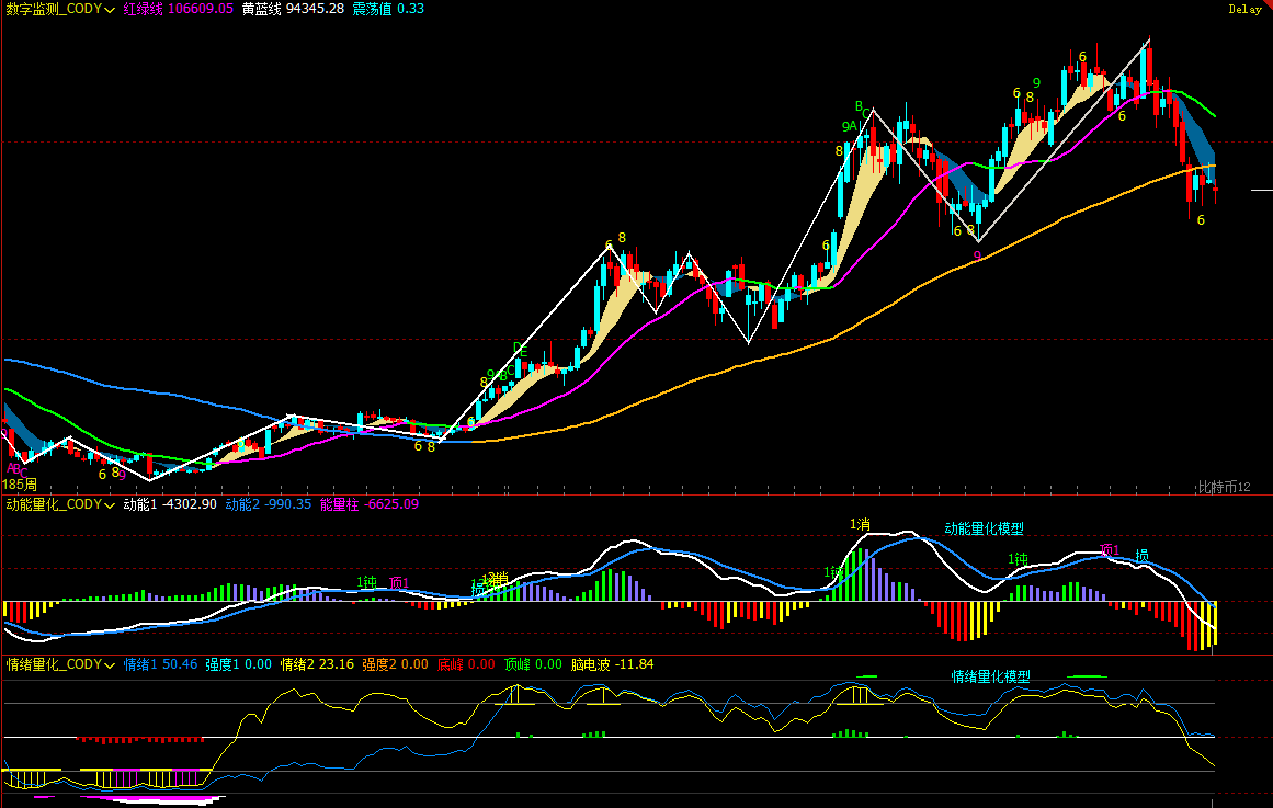 The above data indicates: Bitcoin is in a downward trend, entering a bearish market at the weekly level, and caution is advised regarding adjustment risks.
