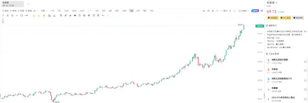 ● On the same day, silver prices also refreshed their historical high to $69.45 per ounce, while platinum and palladium futures surged, causing the non-ferrous metals market to boil over.