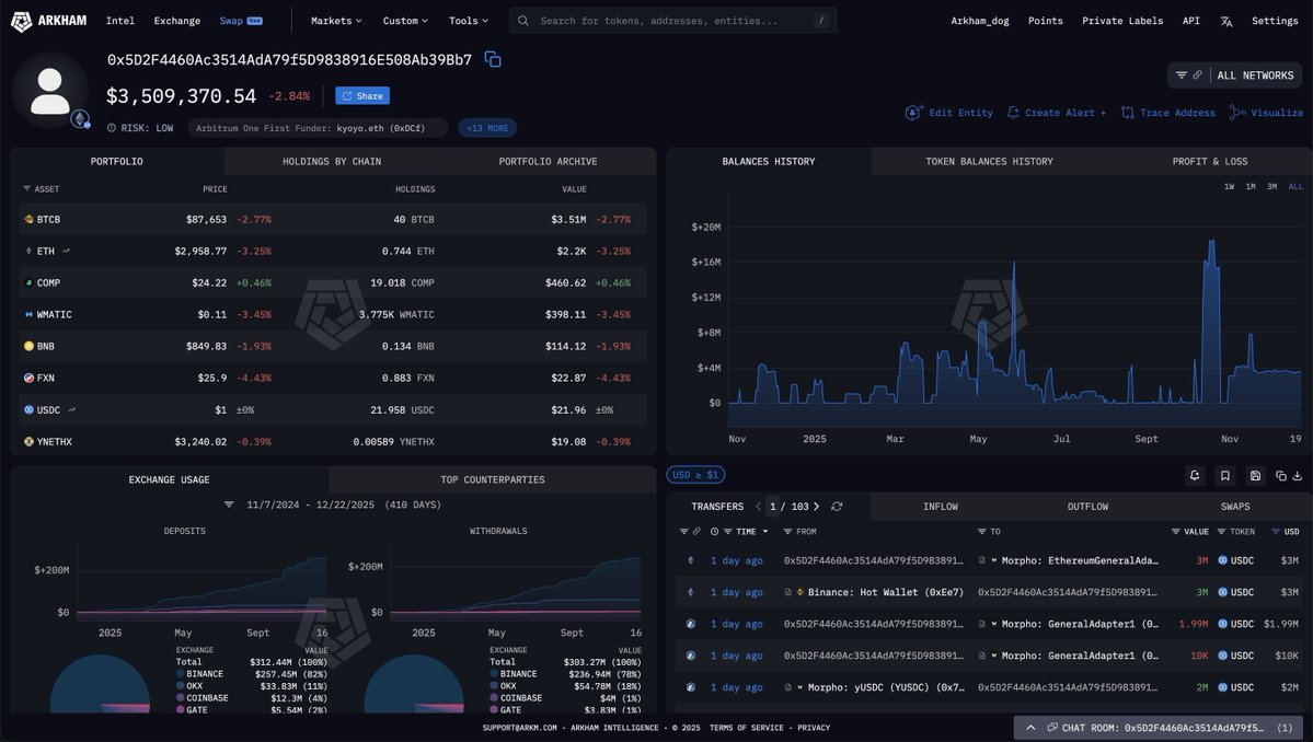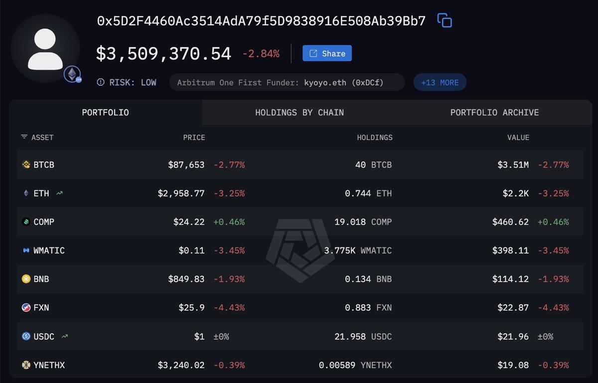 He has been holding his BTC short for so long that his account has generated $9.6M in funding on this trade alone. He also holds $3.5M of BTCB on BNB Chain.
