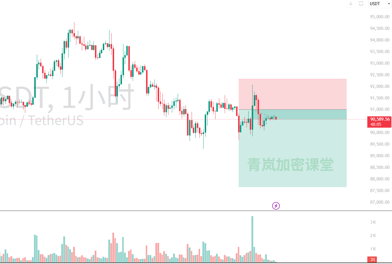 1. Main Idea (High Short): When the price rebounds to the 91,000-91,500 area, consider lightly positioning short orders, with a stop loss above 92,200. The first target is 89,000, and the second target is 87,000.