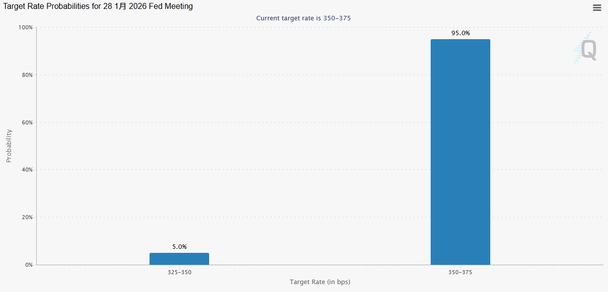 After the unemployment rate data for December was released, market expectations for a Federal Reserve interest rate cut plummeted sharply. Traders quickly adjusted their betting direction, with the probability of a rate cut in January crashing from the previous 11% to just 5%.