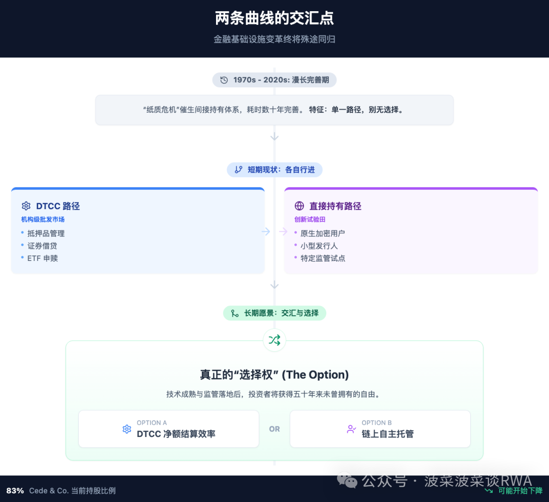In the long run, the two curves may converge. When the circulation scale of tokenized entitlements is large enough, and when the regulatory framework for direct holding is mature enough, investors may finally gain true choice—enjoying the efficiency of net settlement within the DTCC system or opting out to self-custody on-chain, regaining direct control over their assets.