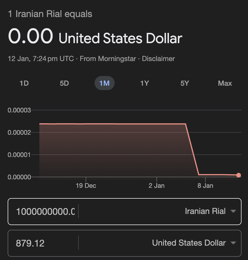 🚨 Another complete collapse of the fiat currency system and sovereign credit - the exchange rate of the Iranian Rial against the US dollar has plummeted to 1