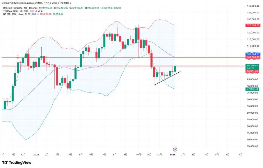 Bitcoin Weekly Level: Yesterday's price broke upward, and the weekly Bollinger Bands ended the sideways fluctuation. The next weekly target is the middle track of the weekly Bollinger Bands: around 101,600.