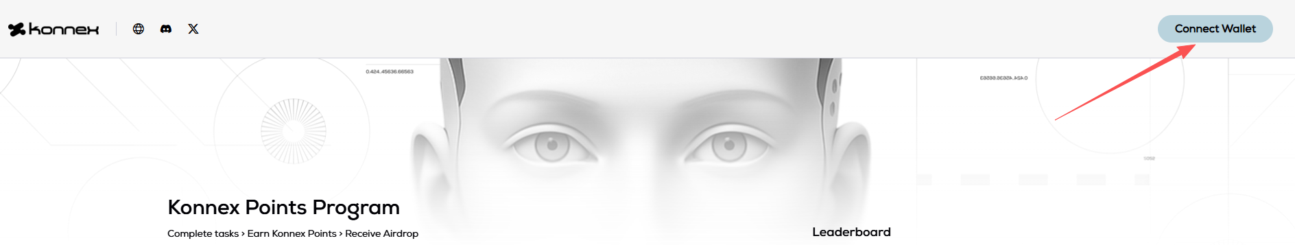 STEP 1. Visit the website (link: https://hub.konnex.world/points), click "Connect Wallet" to log in to your personal account.