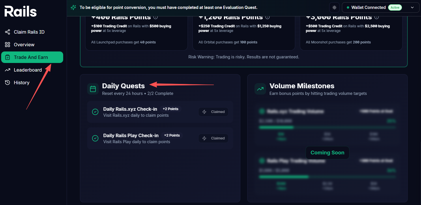 STEP 2. After receiving your Rails ID, complete the social tasks within the platform.