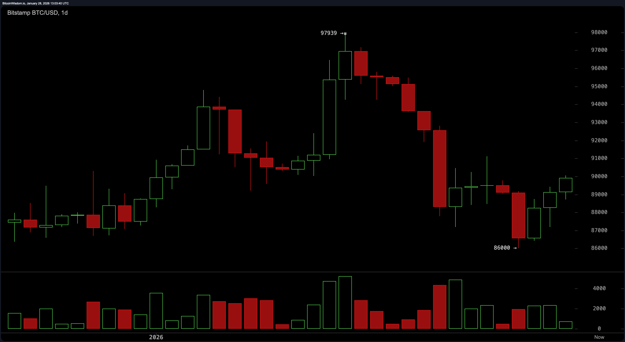 BTC/USD 1-day chart via Bitstamp on Jan. 28, 2026.