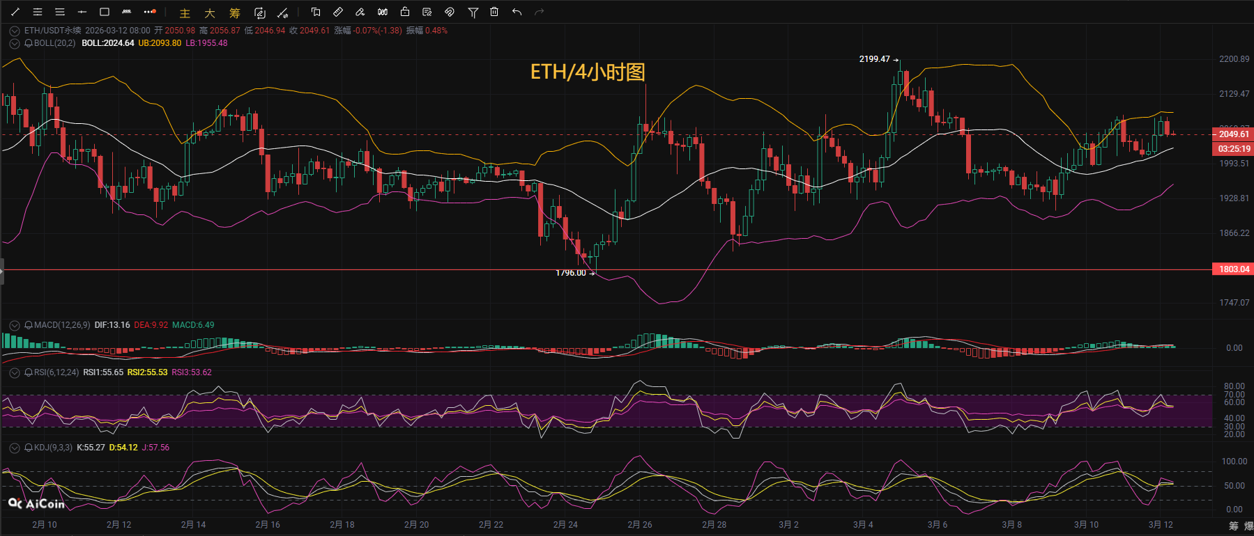 Gu Jingci: 3.12 Bitcoin/Ethereum continue to fluctuate, short positions take profit, long positions ready to enter.