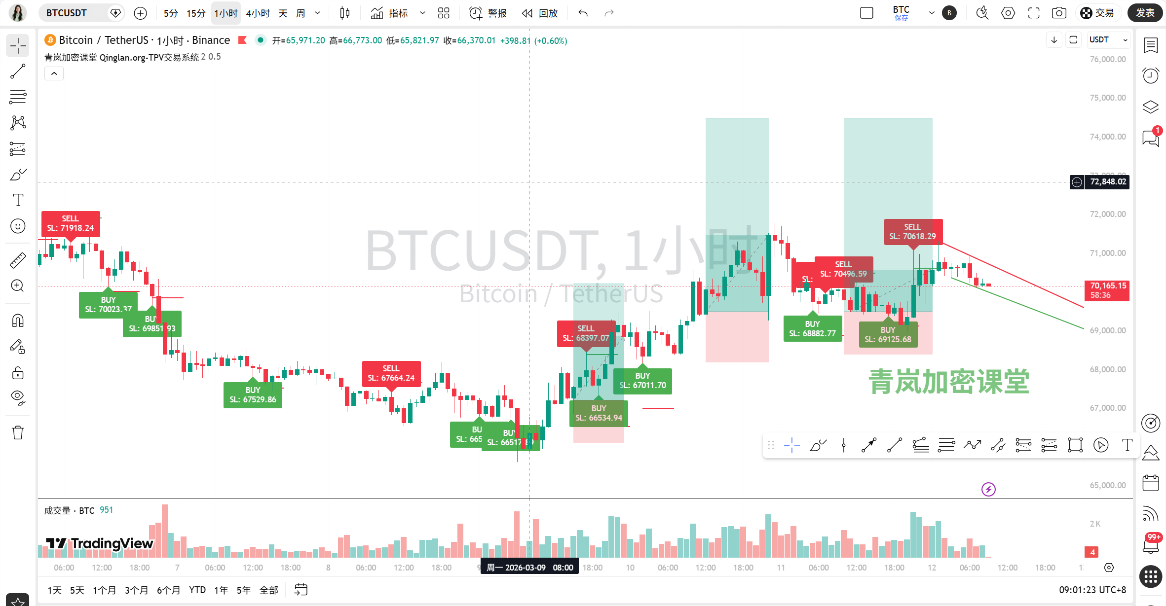 1. Current (within a few hours): In the ultra-short term, it is highly likely to continue oscillating within the small range of 69800-70200. The 15-minute bearish arrangement has downward pressure, but the RSI is close to oversold, limiting the downside space.