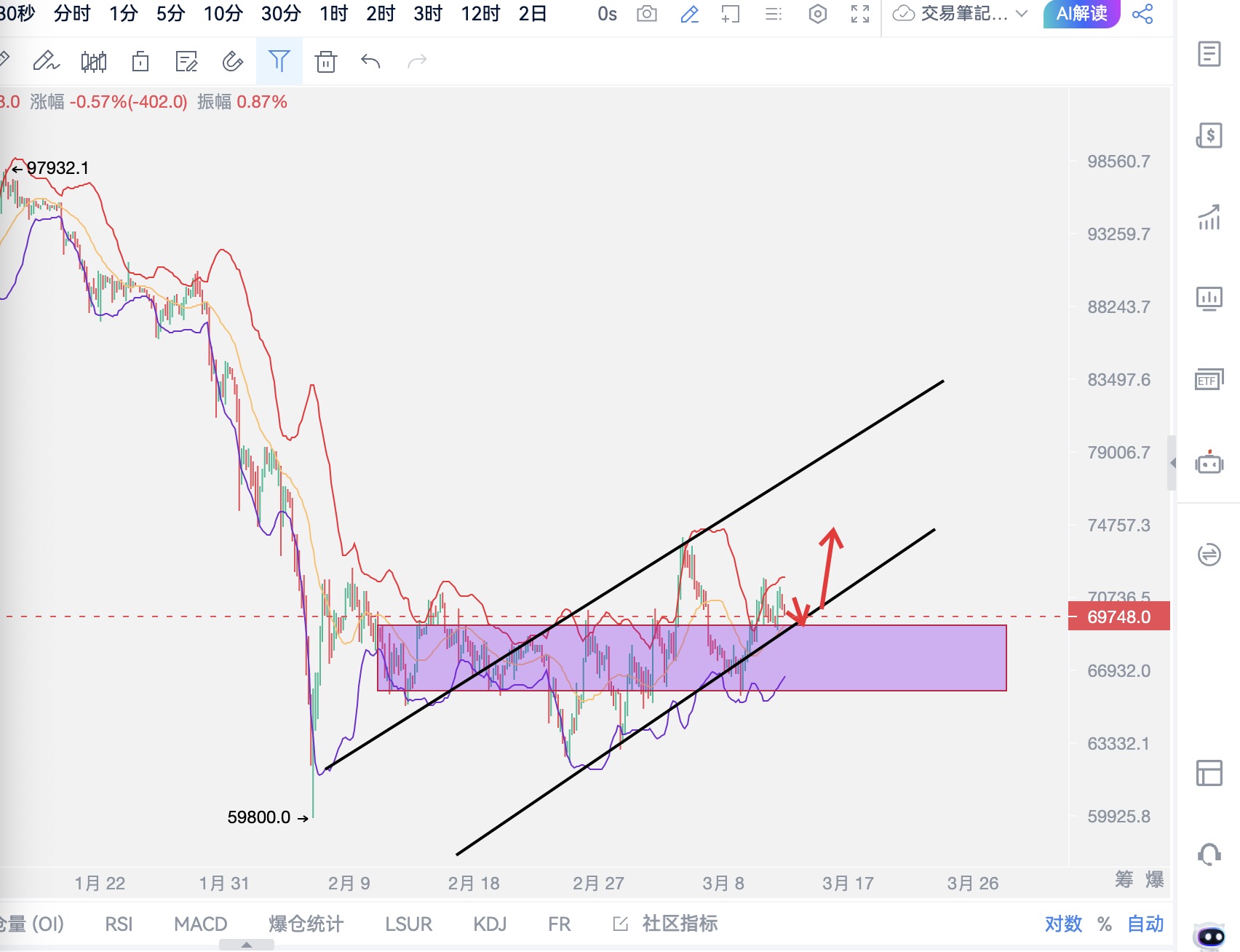 Considering building positions in batches during the pullback in the 68500-69000 area with an upward outlook. First target: 71000-71500 threshold; second target: 73000-75000 range; defense at 68000 threshold. Thank you all for your attention; the levels are for reference only.