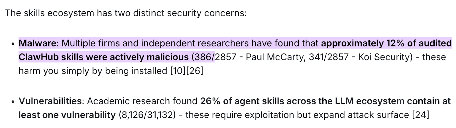Real case: According to recent joint audit reports from several security agencies including Paul McCarty and Koi Security, up to 12% of the audit skill packages in the ClawHub market (sampled from 2857, nearly 400 were found to be toxic packages) are purely active malware.