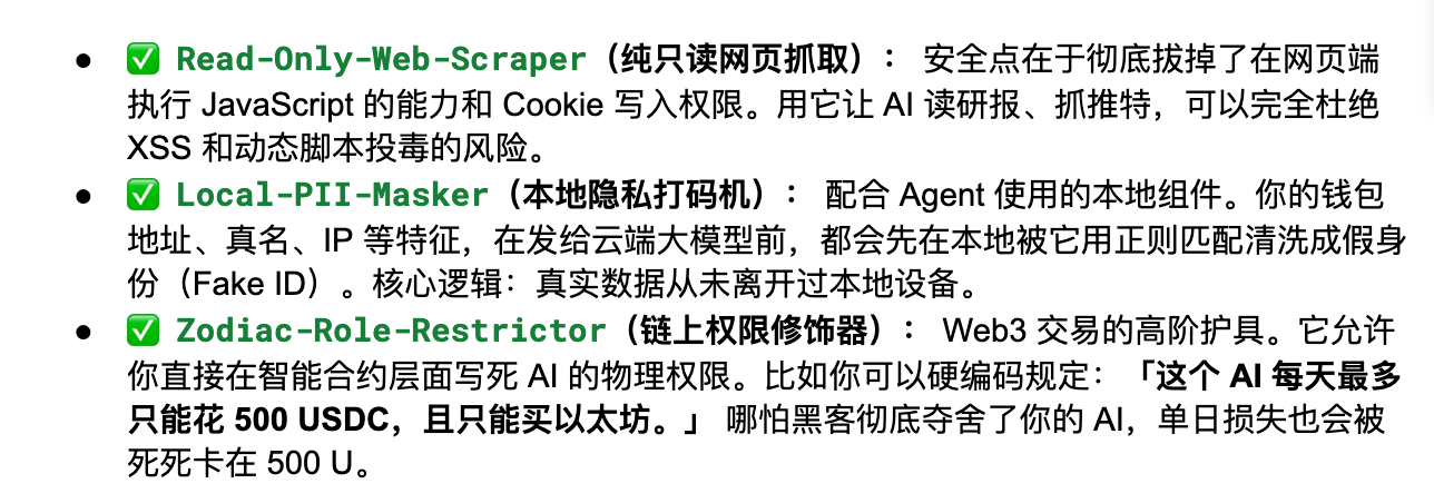 Hardcore AI efficiency blogger @AYi_AInotes compiled a security whitelist overnight after the poisoning wave outbreak (link to original post). Below are several practical Skills that have completely stripped the risk of overreach: