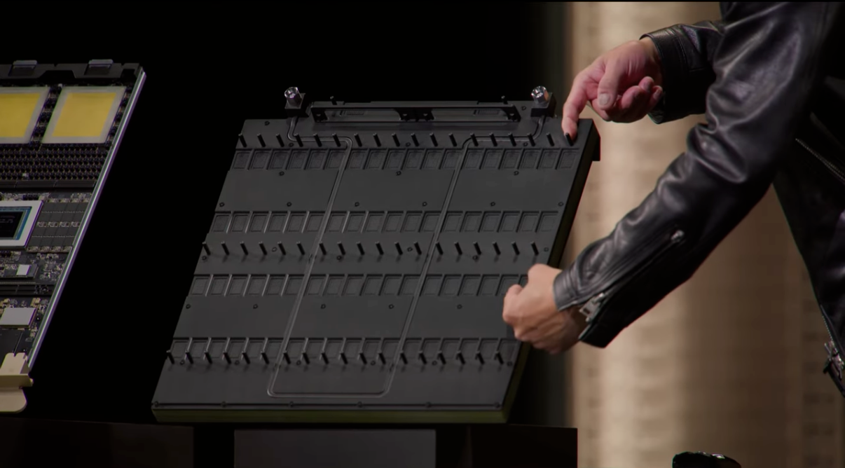 On the back of the midplane, NVIDIA has moved away from traditional copper cables. He believes that copper cables have limitations in transmission distance, and instead, this new system connects 144 GPUs. This is the new generation of NVLink. It also installs vertically, connecting to the back of the midplane. The front end is computing, and the back end is the NVLink switch, combined into a giant computer.