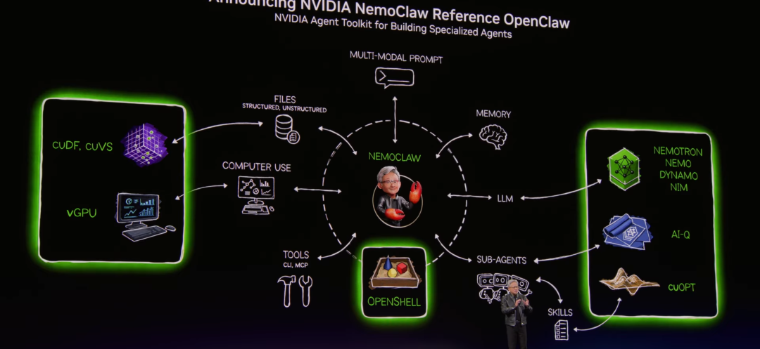 It integrates a complete set of AI agent tools, with one of its core technologies being OpenShell’s module, which is now fully integrated into OpenClaw. Users can directly download, use, and further develop it and connect it with the strategy engines of SaaS companies worldwide.