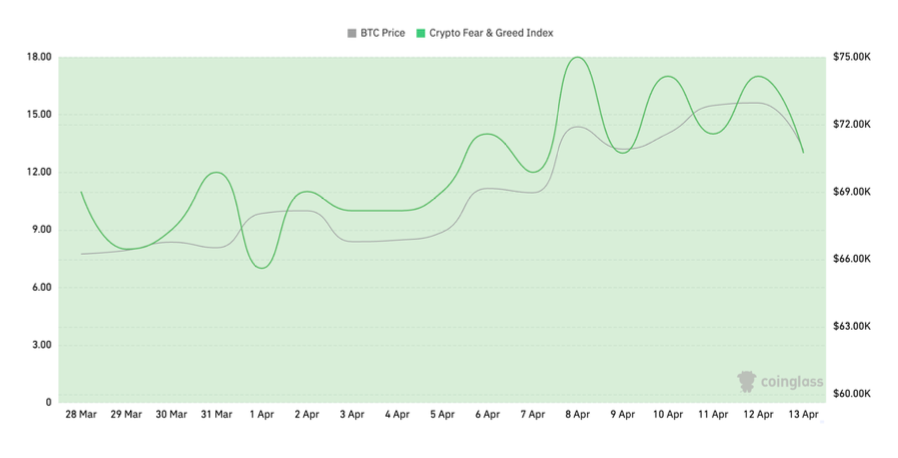 The cryptocurrency fear index is at 13, indicating extreme fear.