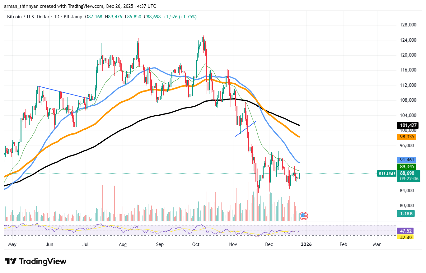 加密市场预测:比特币可能突破90,000美元,柴犬币(SHIB)触及隐藏反转水平,以太坊(ETH)的新年上涨会发生吗?