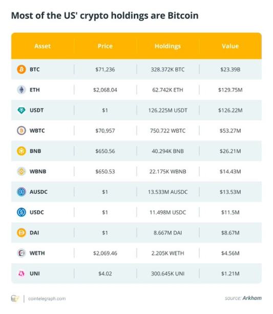 尽管比特币的坚定支持者希望美国政府开始购买比特币,但政府持有的比特币数量并未变化。自行政令签署以来,美国政府一直持有约 328,272 枚比特币。