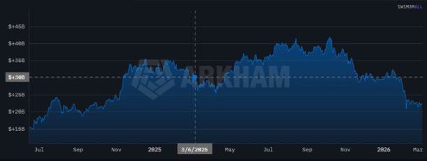 自 2025 年 3 月以来,美国加密资产组合价值大幅下降。来源:Arkham