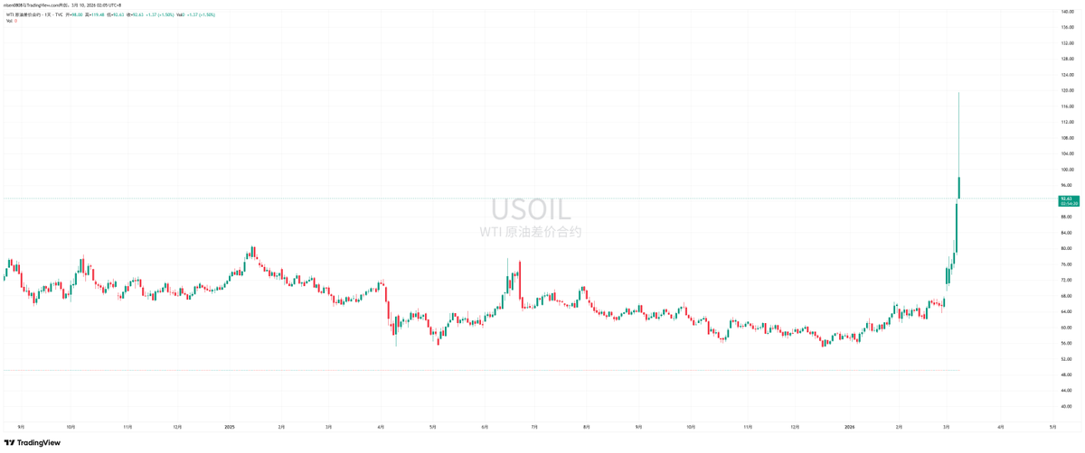 继续被地缘战争支配的一天,我看今天很多小伙伴在疑惑为啥战争更加激烈了,美股在下跌,而油价在上涨,反而 $BTC 也在上涨,是不是投资者开始把 Bitcoin 当成了避险工具,其实并不是。在今天上午的时候市场的反应仍然不够好,纳指和标普都下跌了超过 1.5% ,美国的油价涨到了 120 美元,这时候的市场情绪非常差。