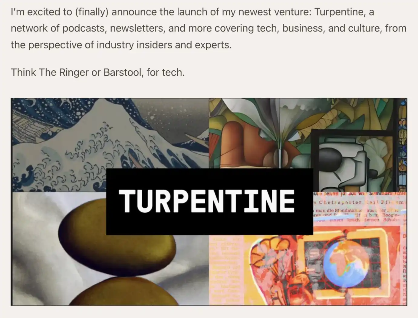 2025 年 4 月,a16z 收购了 Erik Torenberg 的播客网络 Turpentine。这是一次典型的收购 + 人才招聘交易,a16z 通过收购 Turpentine 来扩展其媒体和网络业务,Erik Torenberg 则加入 a16z,负责投资并领导媒体团队。7 个月之后,a16z 正式推出 a16z New Media。