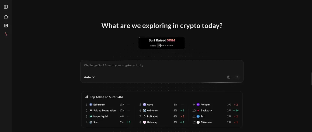 针对这一现状,Surf 等项目推出了面向加密领域的专属人工智能研究工具,将分散的数据源加以整合。在所有加密领域的人工智能应用场景中,研究类工具对普通用户的门槛最低,无需编程或交易经验即可使用。