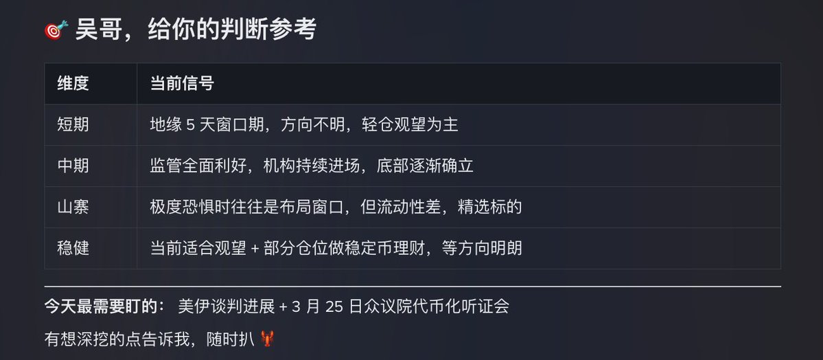 ⚠️ 5 天窗口期内随时可能反转,地缘风险仍是悬在盘面上的最大黑天鹅;