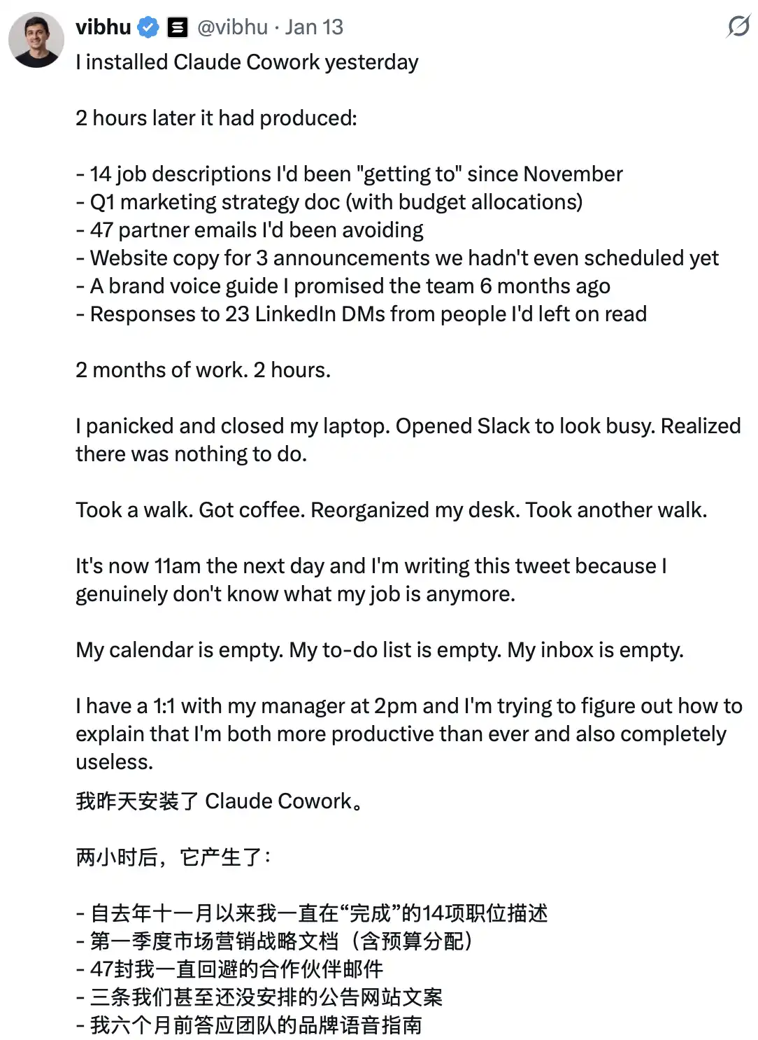 ·Cowork 从 0 到上线仅用 10 天,完全基于 Claude Code 构建