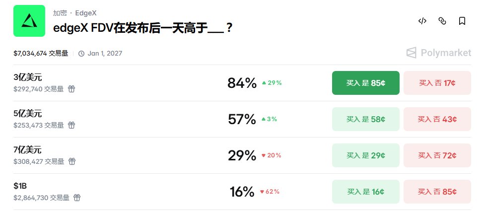 目前 Binance Pre-Market上 $EDGE 上线就冲出1.5亿美金交易量+102%涨幅,稳定在7亿, Polymarket 大多数人用钱投票给的5亿以上的 FDV 预估数值;